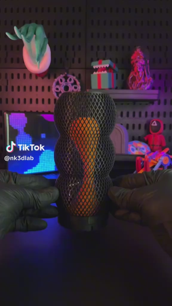 Luminária LED Multicores com Efeito Lava, Impressão 3D Geométrica e efeito visual hipnotizante. Ideal para decoração de quartos, salas e escritórios.
